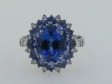 Zlatý prsten s tanzanity a s diamanty v bílém zlatě